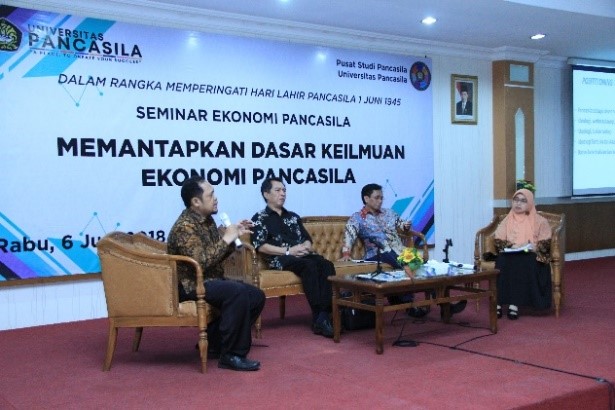 On June 6, 2018, the Institute for the Implementation of Pancasila Ideology held a Pancasila Economic Seminar with the theme "Strengthening the Scientific Basis of Pancasila Economics" with speakers Prof. Sudjito (UGM), Dr. Revrisond Baswir (UGM), Dr. P. Setia Lenggono (Head of the Pancasila Economic Study Center, Trilogi University), Dr. Hendra Nurtjahjo, SH., M.Hum (Head of PSP - UP) and Dr. Sri Widyastuti, SE., MM., M.Si (Dean of FEB - UP). This activity was held in the Hall on the 4th floor of the Faculty of Economics and Business Building, Pancasila University.